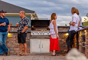 A complete outdoor kitchen with grill, prep space, and thoughtful flow for cooking and serving