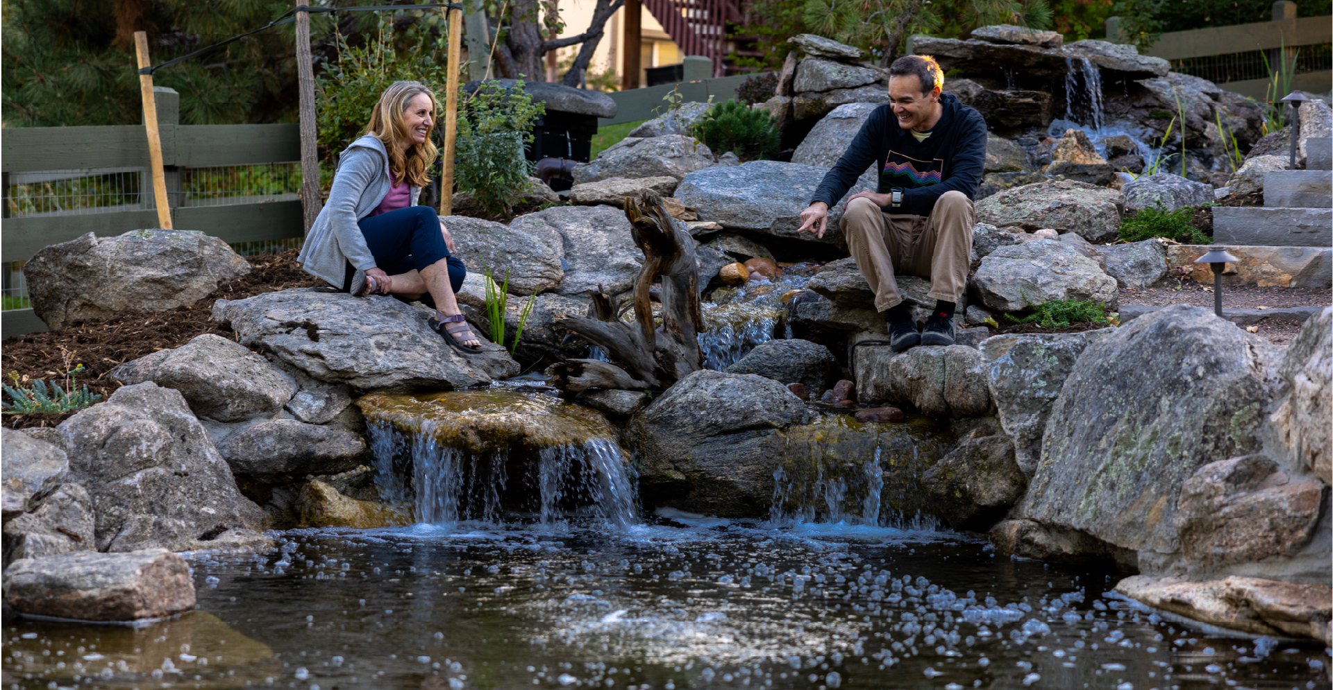 SURROUNDING THE POND IS A BLEND OF STRUCTURE AND SOFTNESS